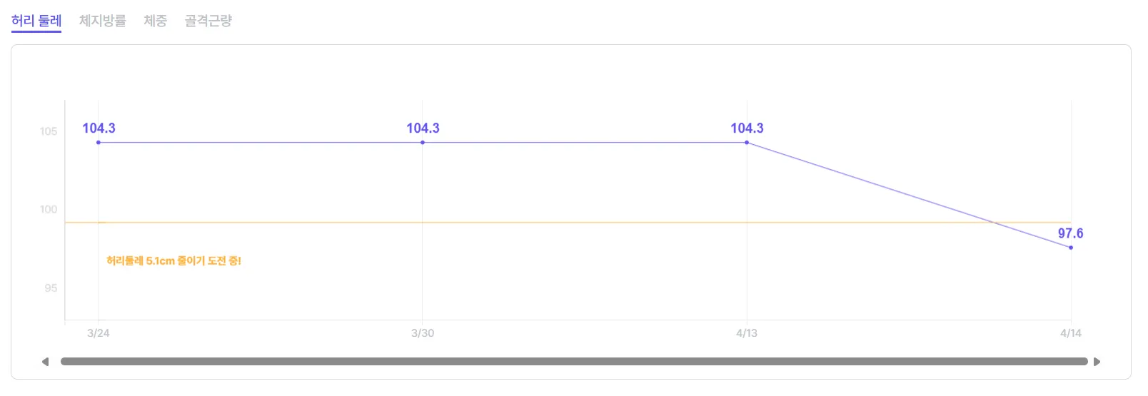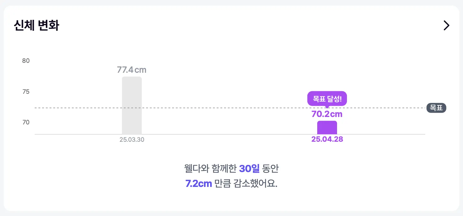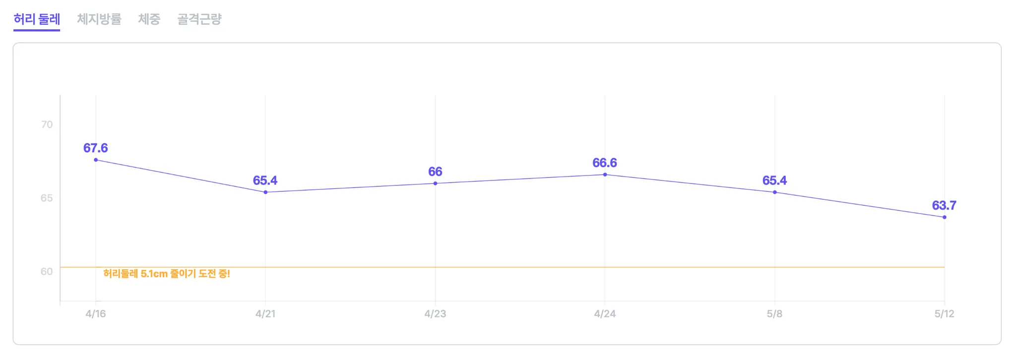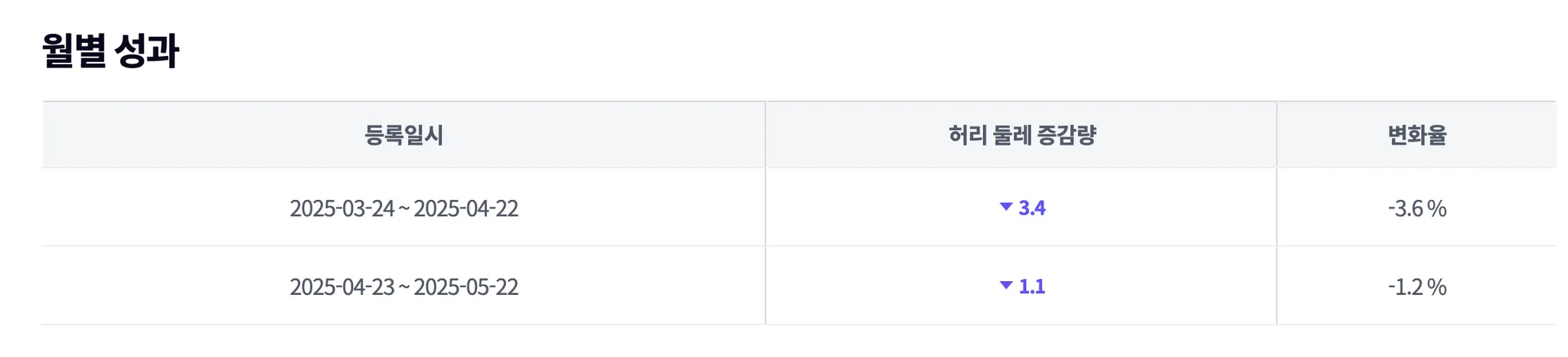 그 결과, 2개월 내 감량을 목표로 하셨던 구독자님은 단 한 달 만에 목표였던 허리 둘레 5.1cm 감량에 성공하며 놀라운 성과를 이루어내셨습니다.