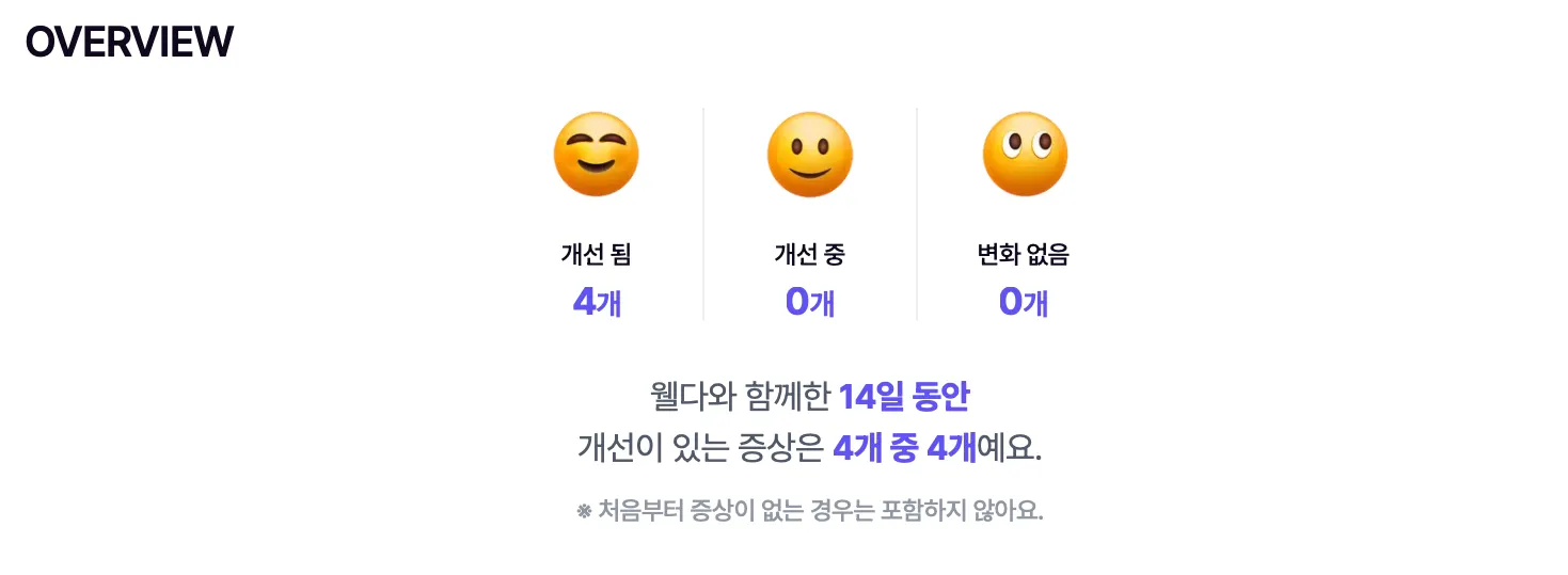 한 달 동안 허리 둘레 3.7cm 감량이라는 눈에 띄는 성과를 이루셨을 뿐만 아니라, 여러 항목에서 증상 개선도 경험하셨습니다. 특히 허기짐 증상이 크게 완화된 점이 인상적이었습니다.