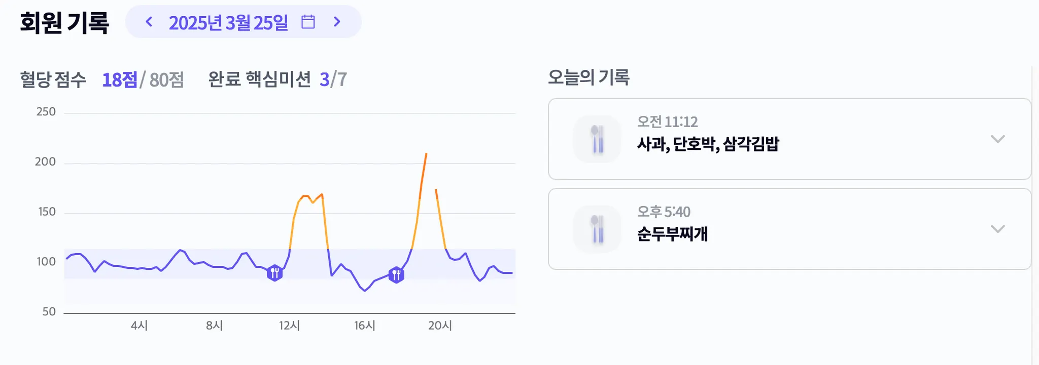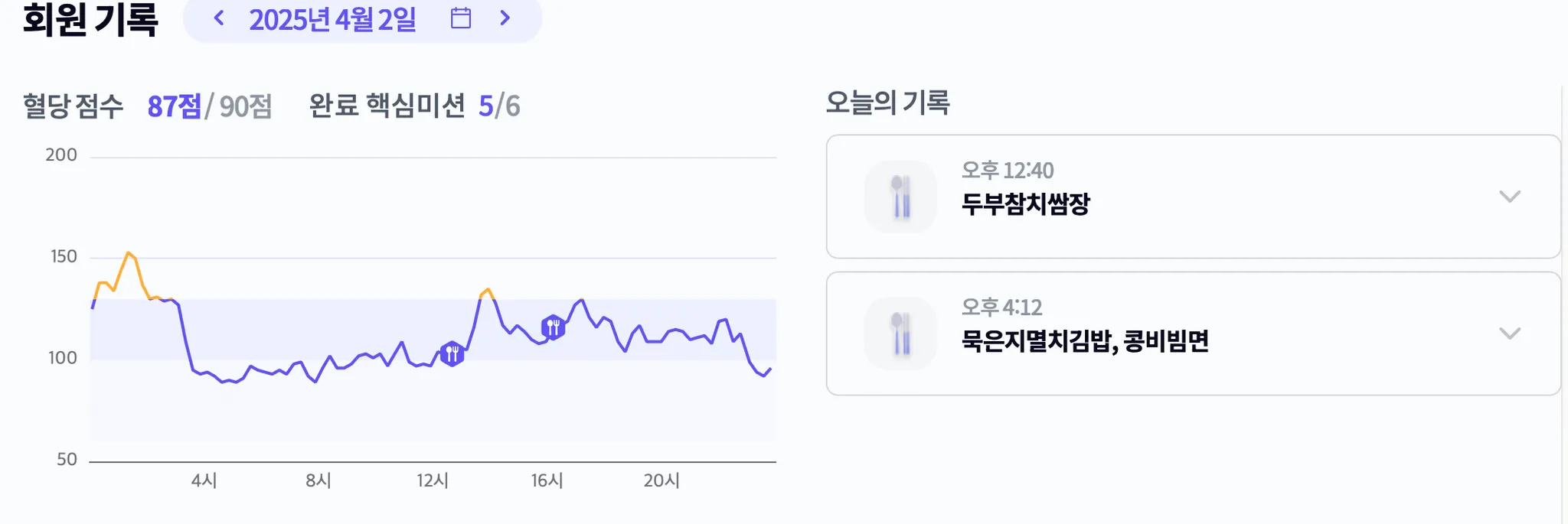 이러한 코치님의 노력 덕분에 갓생걸이될테야님은 일상 속에서 샤브샤브와 같은 식단지 식사를 실천해 주시고, 식단지 식사가 어려울 때도 계란, 순두부와 같은 혈당을 많이 올리지 않는 음식을 포함한 식사를 하여 건강한 식습관 형성을 위해 노력해주셨습니다.