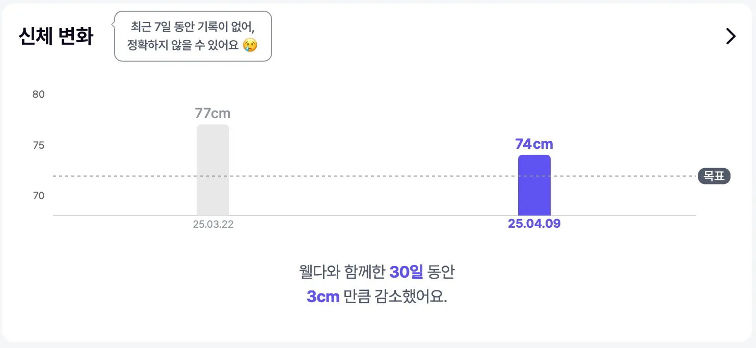 이러한 섬세한 코칭 덕분에, 구독자님은 야식 섭취 습관이 많이 개선되셨고 2개월간 허리 둘레 약 7cm 감량이라는 멋진 변화를 보여주셨습니다.