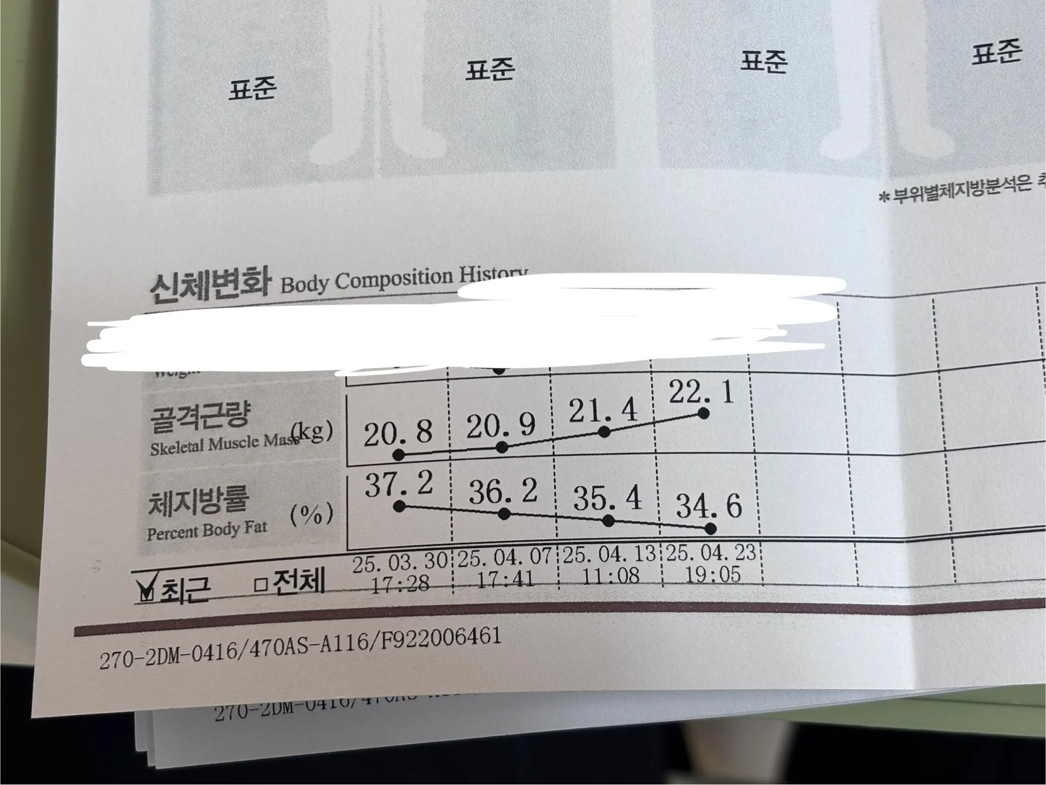 그 결과, 허리 둘레 7cm 감량이라는 목표를 달성하셨을 뿐 아니라, 골격근량은 1.3kg 증가하고 체지방률은 2.6% 감소하는 놀라운 변화를 이끌어냈습니다.