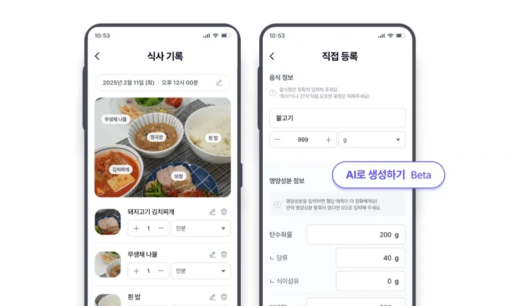 ๋ด๊ฐ ๋จน์ ์์ ์ฌ์ง์ ์ฌ๋ฆฌ๋ฉด AI๊ฐ ์๋์ผ๋ก ์์ ์ ๋ณด๋ฅผ ์ฐพ์ ์์ฝ๊ฒ ๊ธฐ๋กํ ์ ์์ด์! ๋ง์ฝ ์ฌ์ง์ด ์๋ค๋ฉด, ์์๋ช